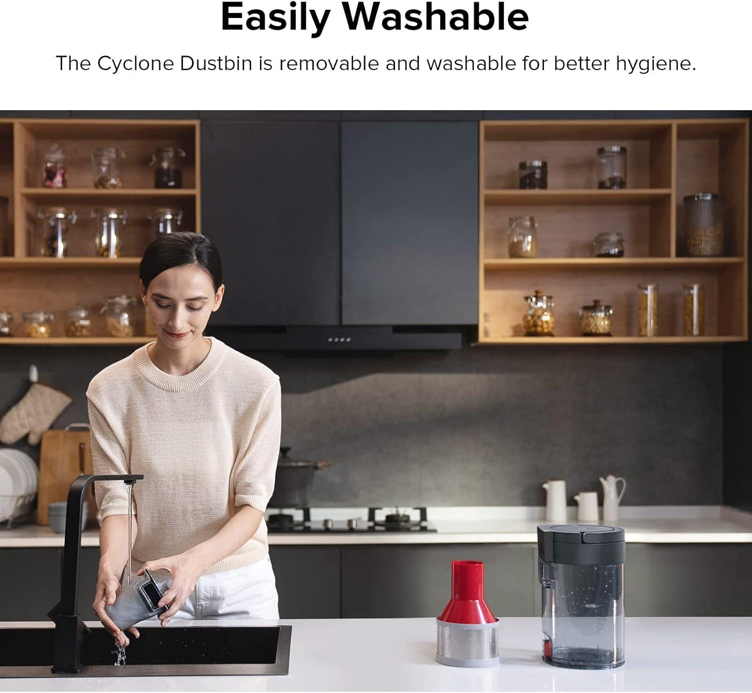 Easily Washable: The cyclone dustbin is removable and washable for better hygiene.