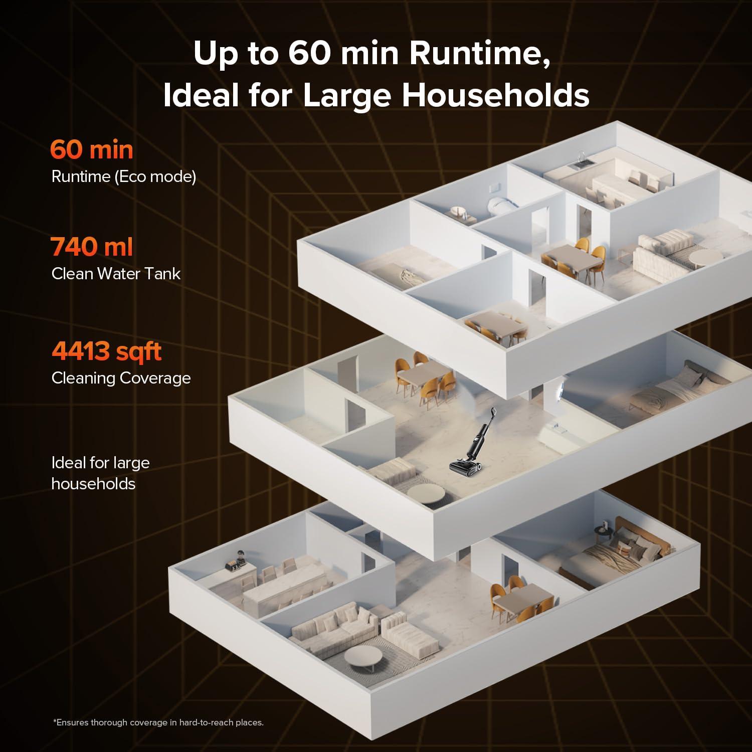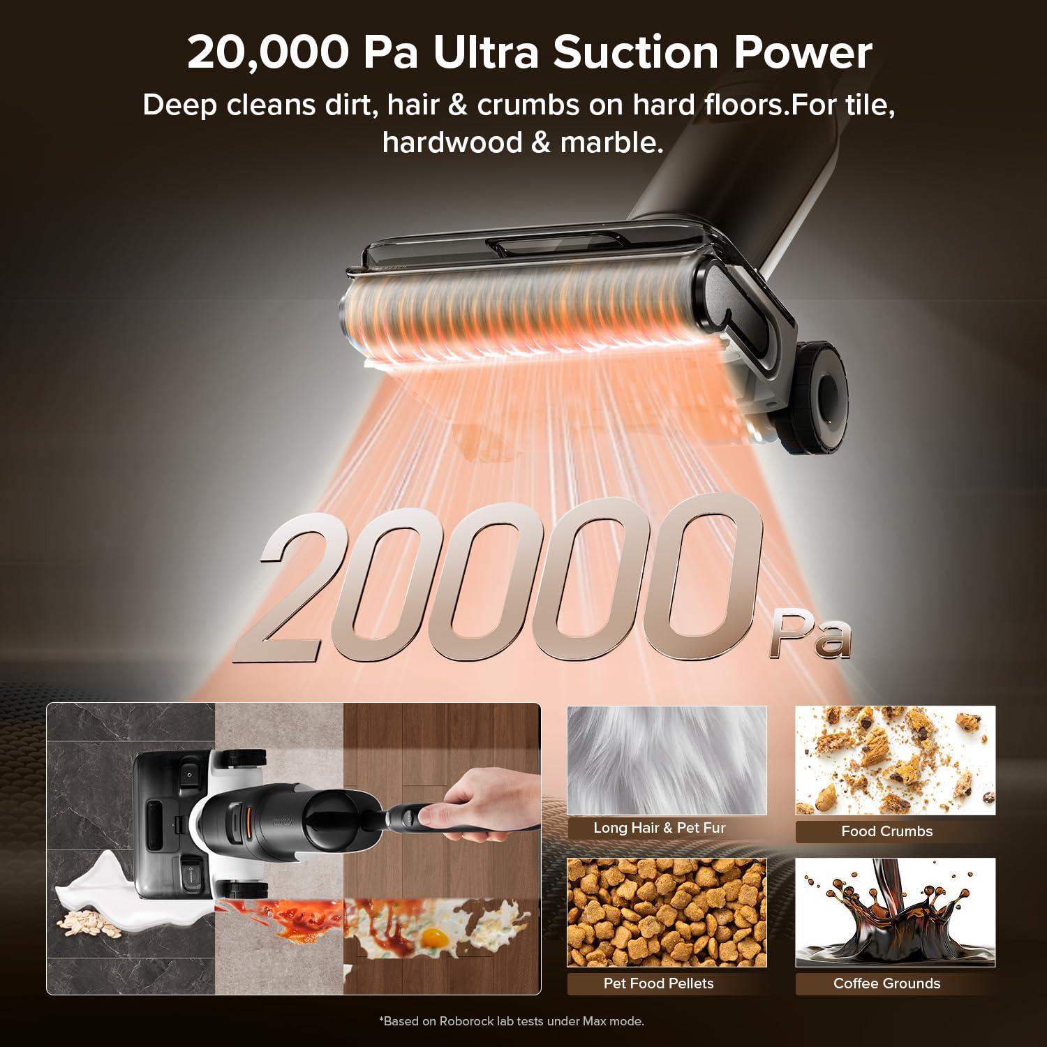 Powerful & Fast Cleaning: 20,000Pa suction and 32 water outlets work together to eliminate stubborn stains in no time, while the intelligent detergent system automatically adjusts cleaning liquid to match dirt levels.