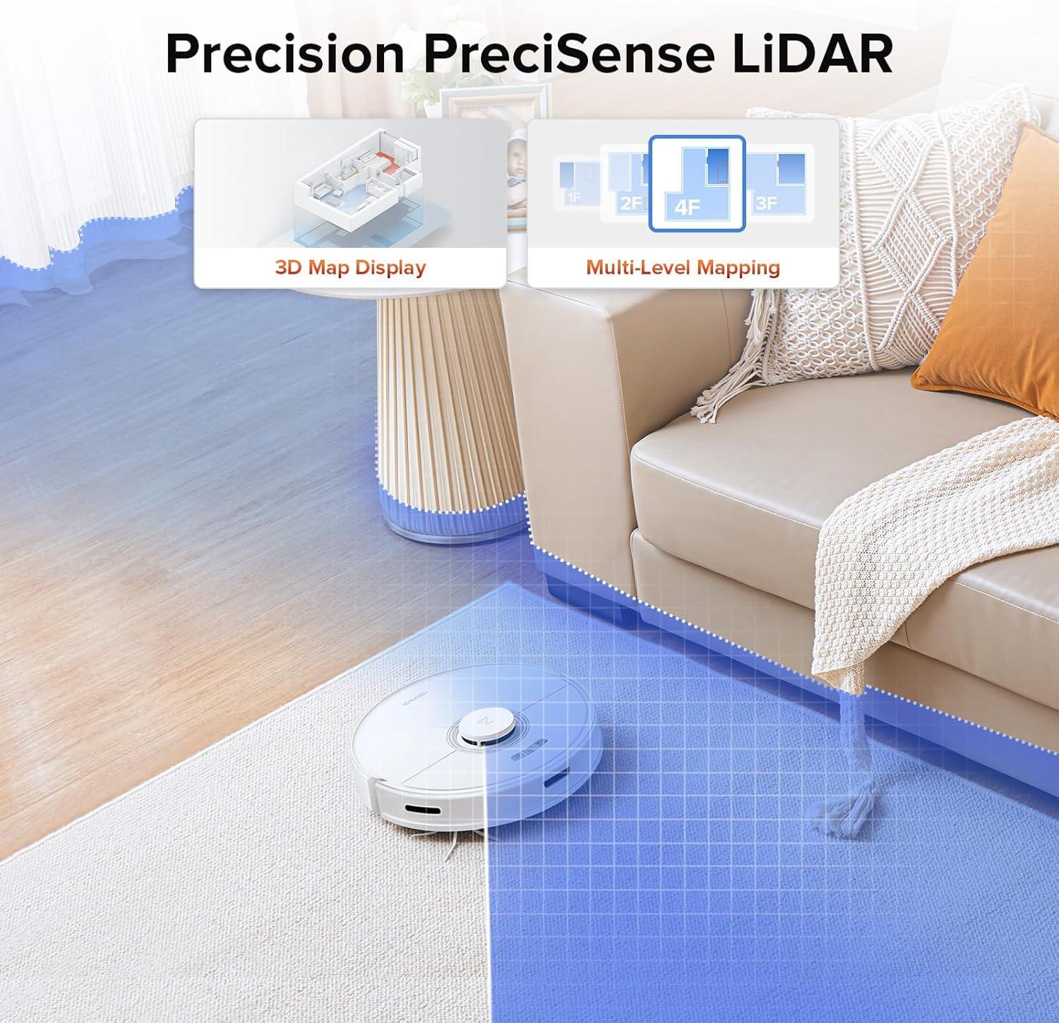 Clean Smarter with PreciSense LiDAR Navigation: Highly accurate LiDAR technology builds precise 3D maps of your home and identifies the most efficient cleaning routes; virtually recreate your space by adding furnishings and flooring materials for a more tailored cleaning experience