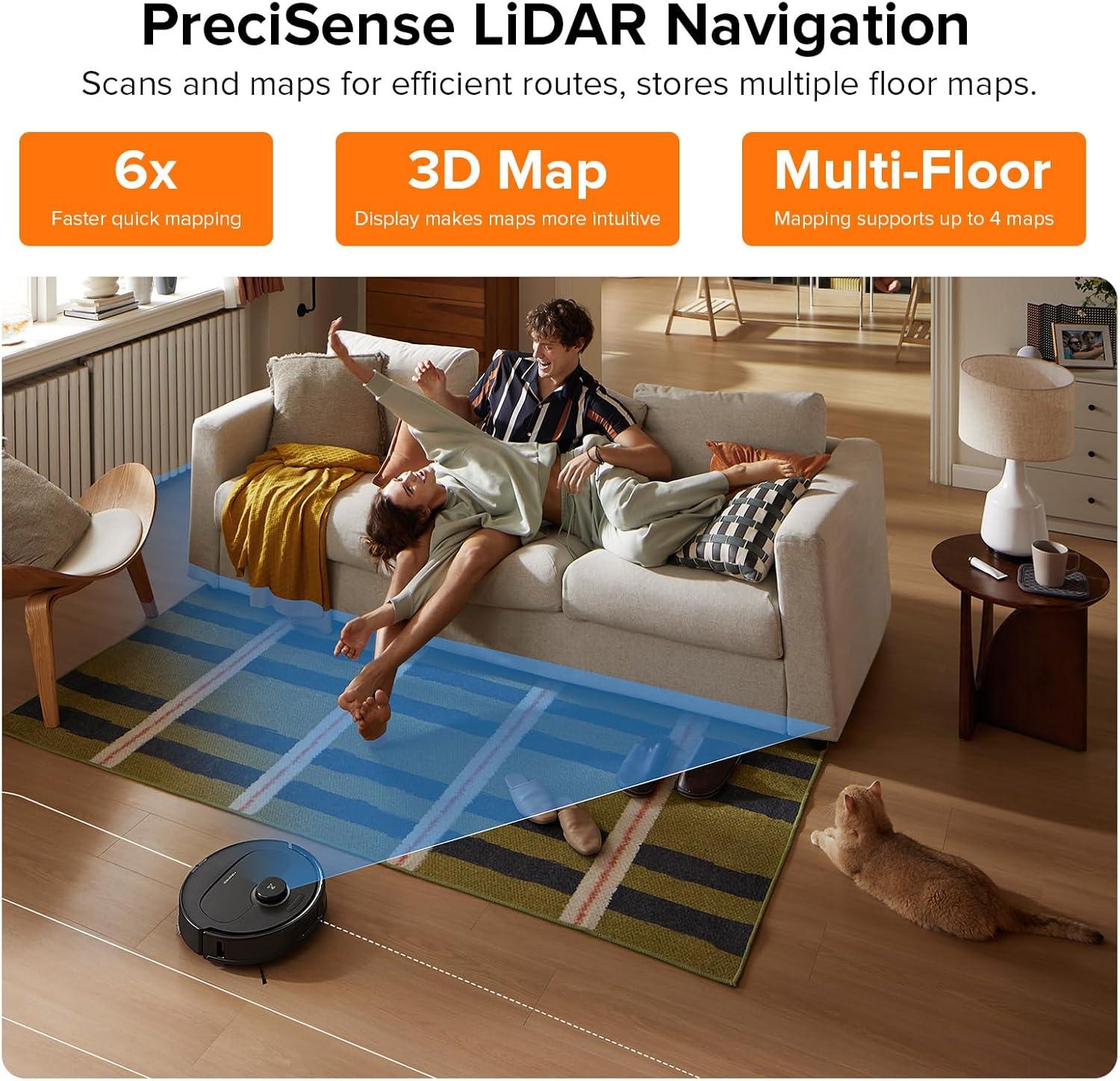 Reactive Tech Obstacle Avoidance: Driven by structured light technology, the robot achieves millimeter-level precision in obstacle detection and navigation, even in cluttered rooms, preventing collisions and jams.