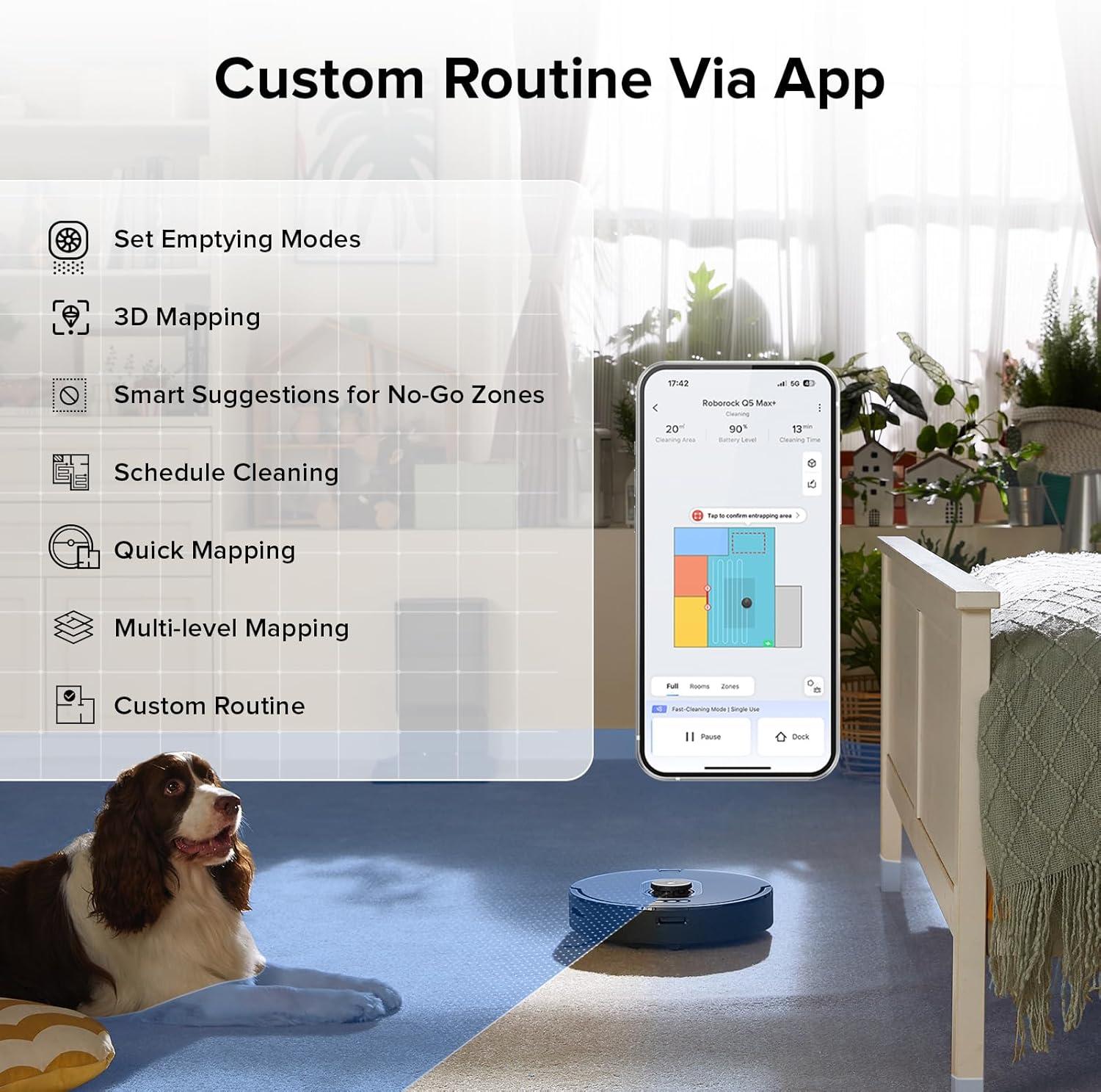 Advanced App & Voice Control – Unmatched Convenience: Enjoy complete control at your fingertips with the Roborock App. Easily manage added features, from Mop Washing and Drying to Auto Emptying suction adjustments, and more. The app even sends Smart Suggestions when it spots tricky areas during cleaning, helping you set up No-Go Zones effortlessly. With support for Amazon Alexa and Siri Shortcuts, you can smoothly initiate or halt cleaning, modify settings, and more using just your voice.