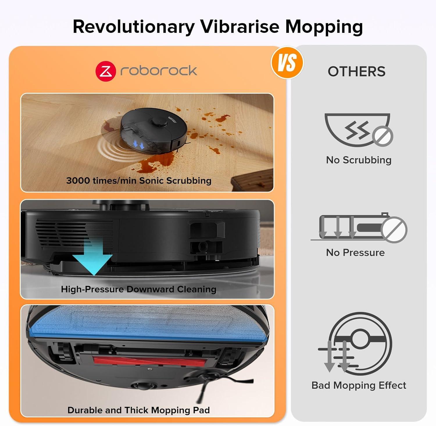 VibraRise Mopping System : Removes dried stains 30% more effectively than traditional robot mops with sonic scrubbing at 3000 times per minute, and combined with consistently high downward pressure, leaves less dirt behind than spinning mops. If the floor is dirty, please change the mop washing mode to “Deep” in the app for better cleaning.