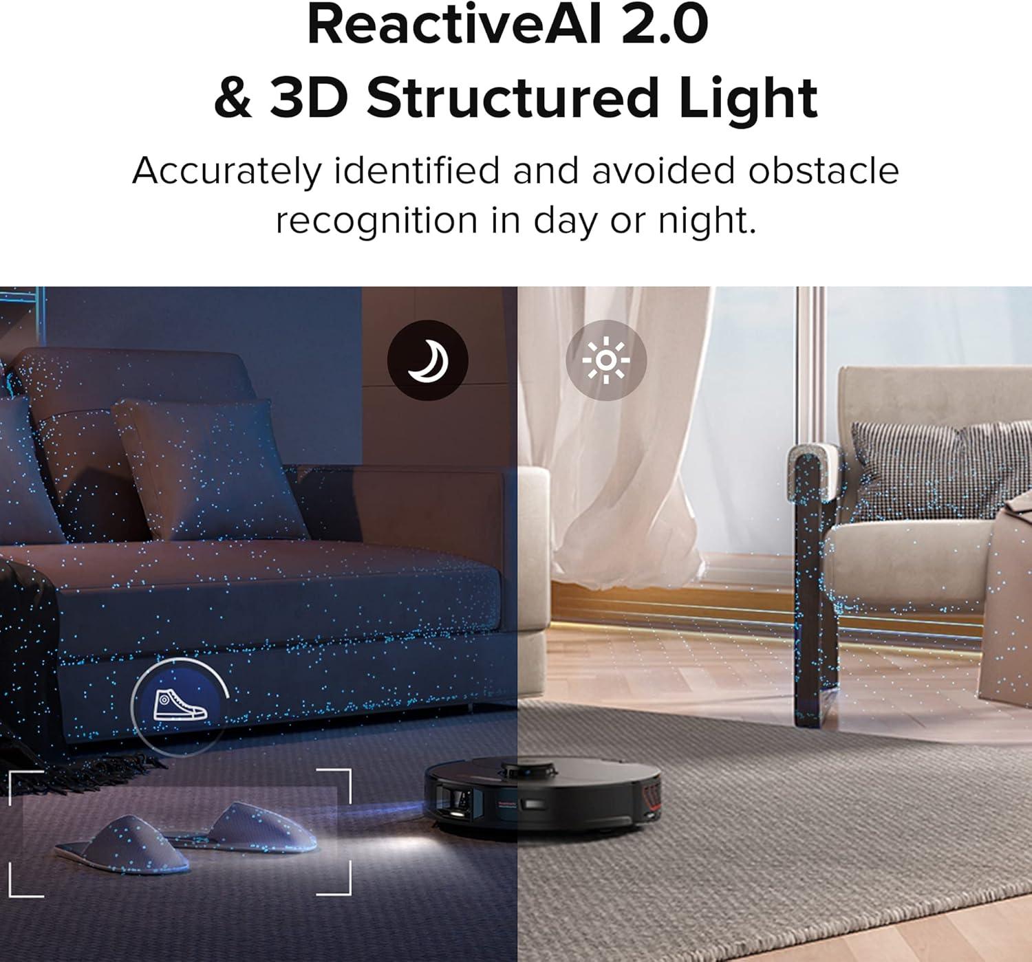 Obstacle Avoidance: ReactiveAI 2.0 Obstacle avoidance uses a camera for hazard recognition, with an LED for recognition in dark rooms for accurate obstacle recognition in day or night.