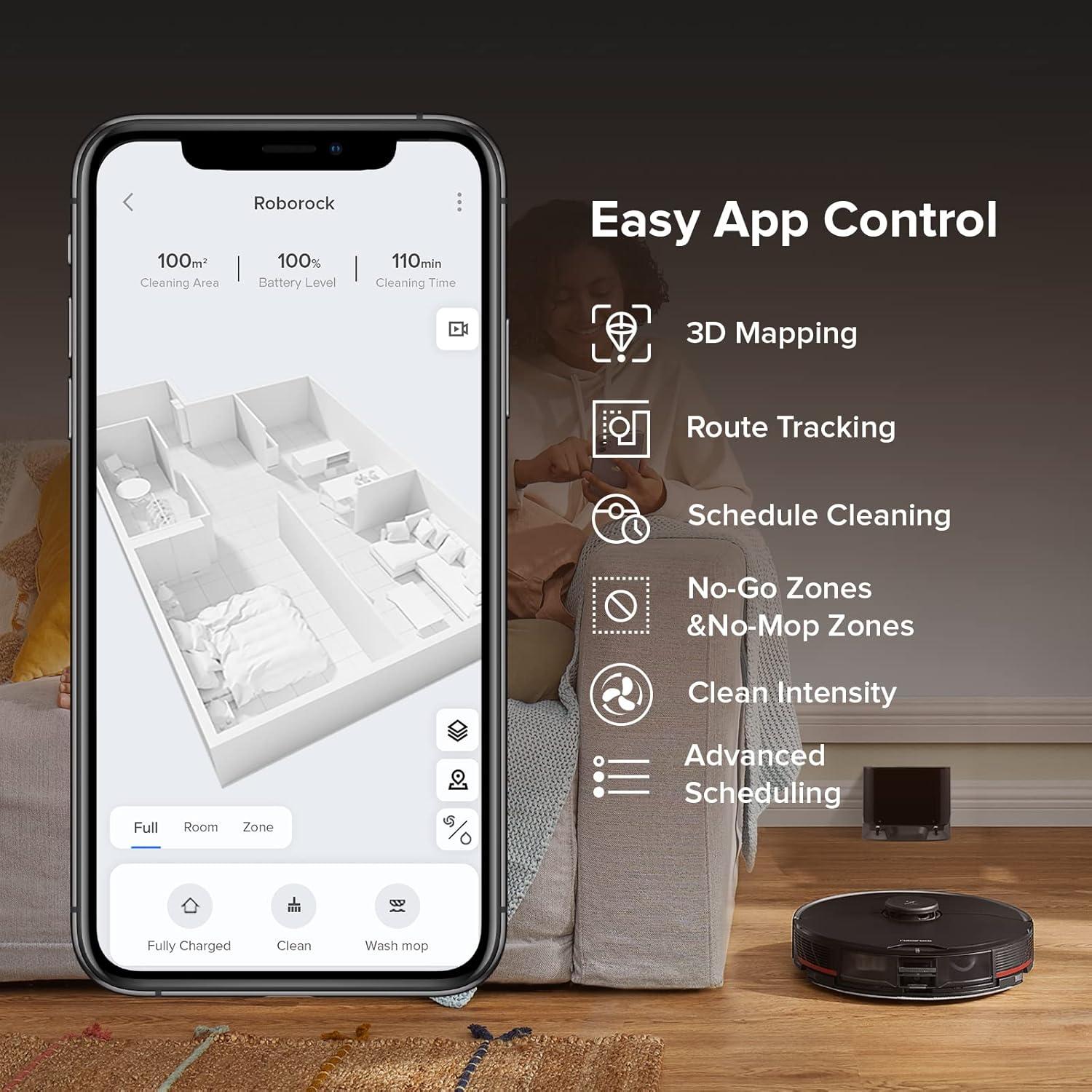 Advanced App Control: 4 emptying options (Smart, Light, Balanced and Max) and 3 washing modes (Light, Balanced, and Deep) each with a different scrubbing frequency are available, so you can pick the right one for your home.