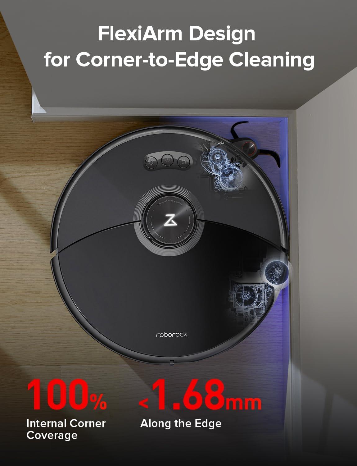 Corner to Edge Cleaning: FlexiArm Design Side Brush extends effortlessly to reach tight spots, sweeping away debris with ease. The liftable Extra Edge Mop reaches closer to the edges, eliminating hidden dirt. Achieving margins of less than 1.68mm along the edge, with a rotating speed of 185 RPM.