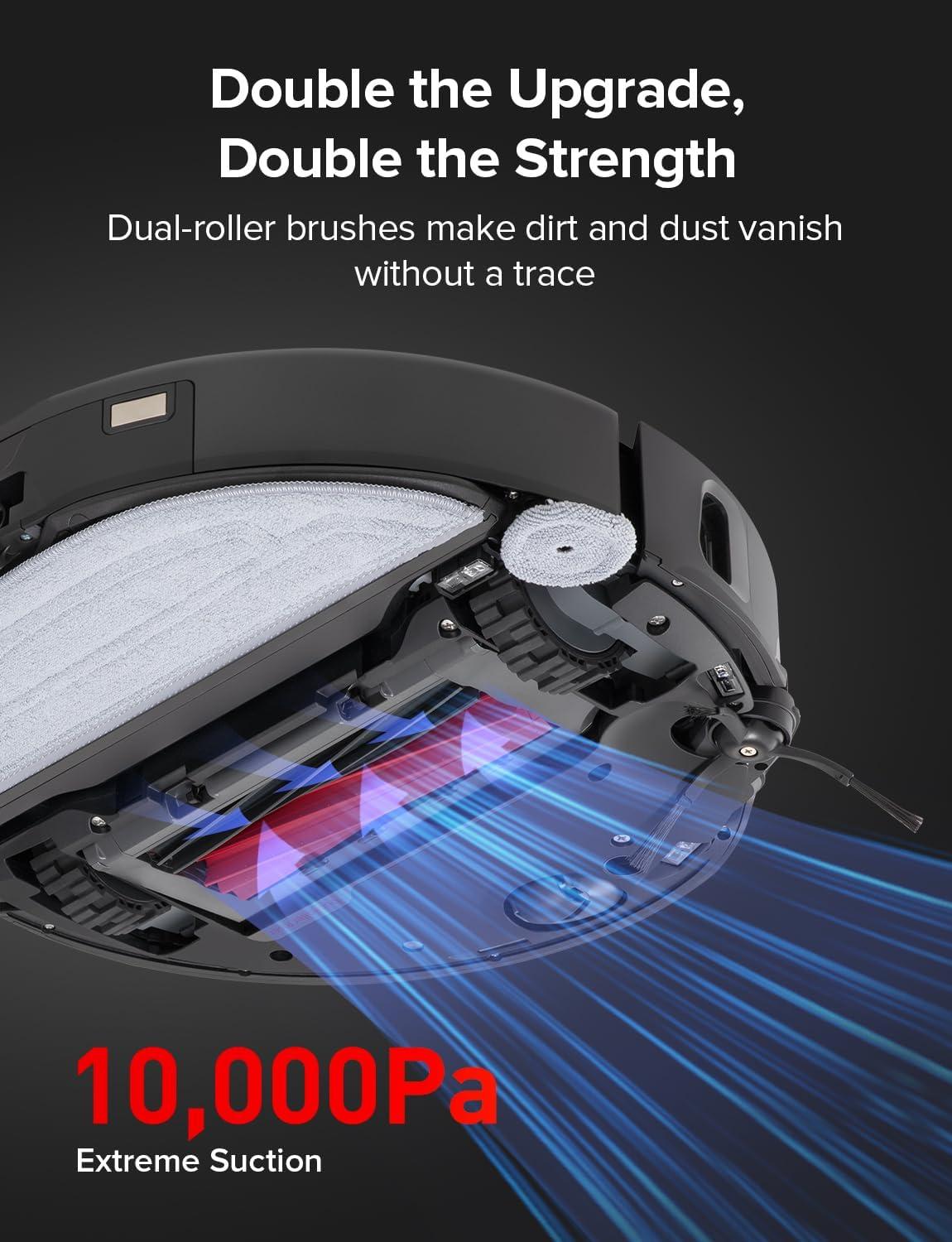 Unmatched Vacuuming Performance: 10,000 Pa suction power enables your robot vacuum to reach deeper into carpets and hard floors, effectively capturing dust and debris. The dual-roller design reduces hair tangles and with concealed scrapers to remove hair, enjoy a seamless cleaning experience.