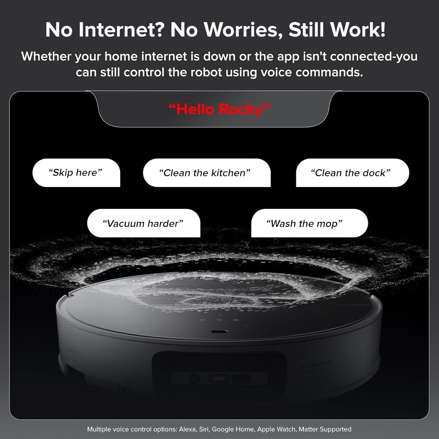 Smart Voice Assistant Integration: Control your Roborock effortlessly! Simply say “Hello Rocky” to command your robot vacuum with your voice. It can clean specific areas, skip rooms, empty the dustbin, clean the dock, and more, all without lifting a finger. Compatible with Alexa, Siri, and Google Home for easy scheduling, even on the go. Plus, enjoy Matter 2.0 compatibility for an enhanced smart home experience!